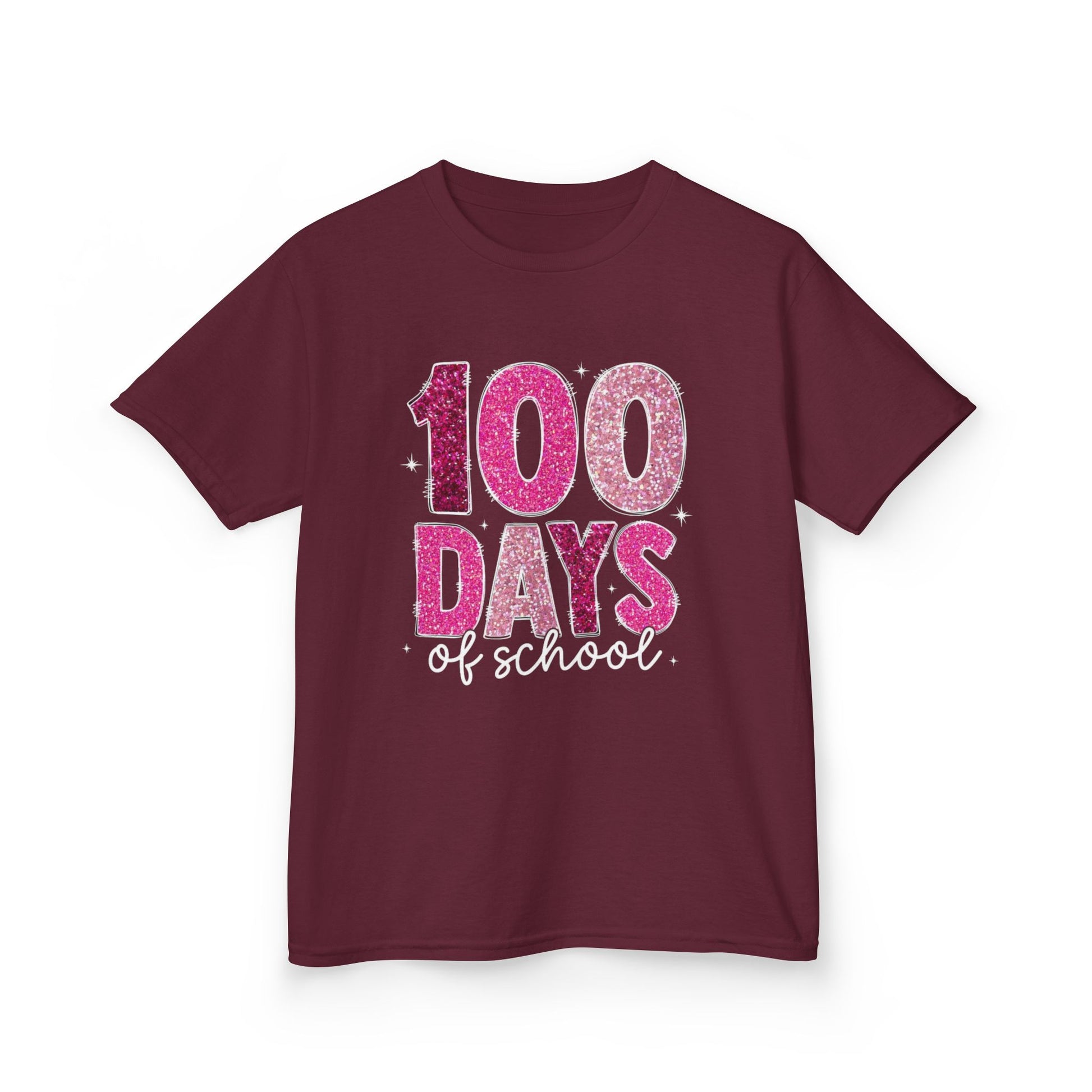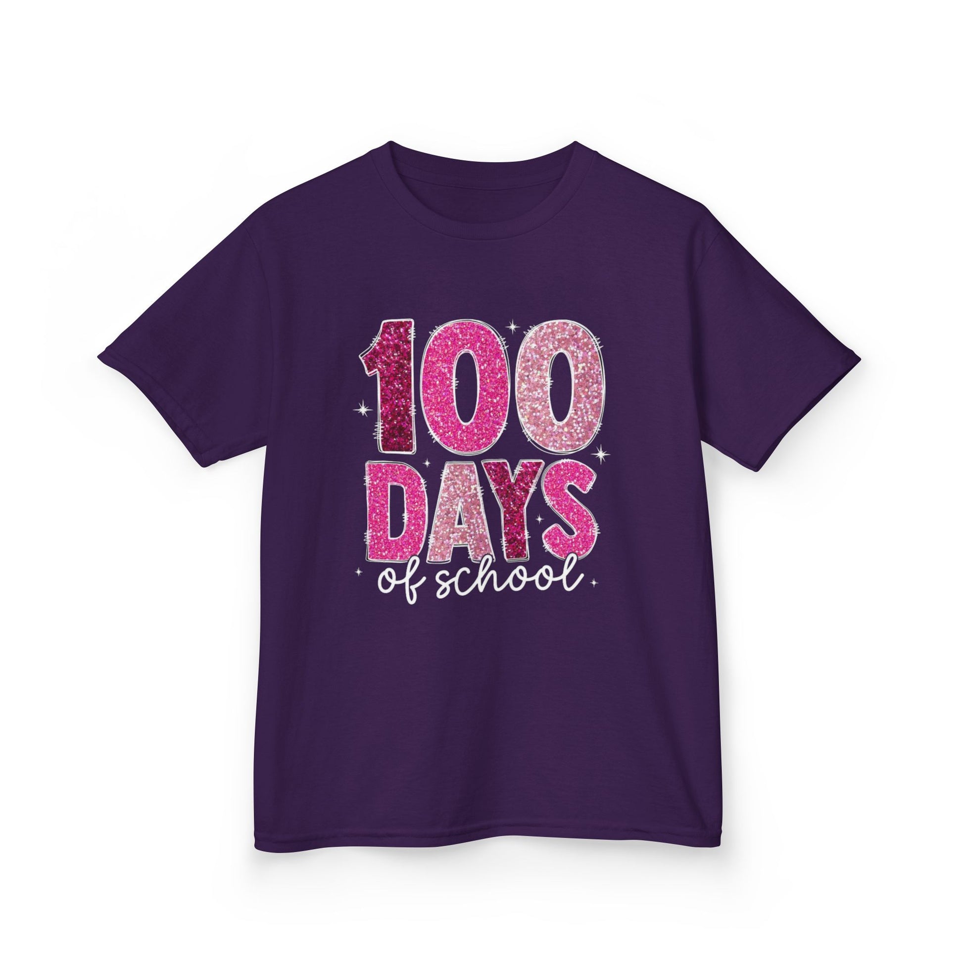 100 Days Glitter Text Kids Tee | School Milestone Shirt