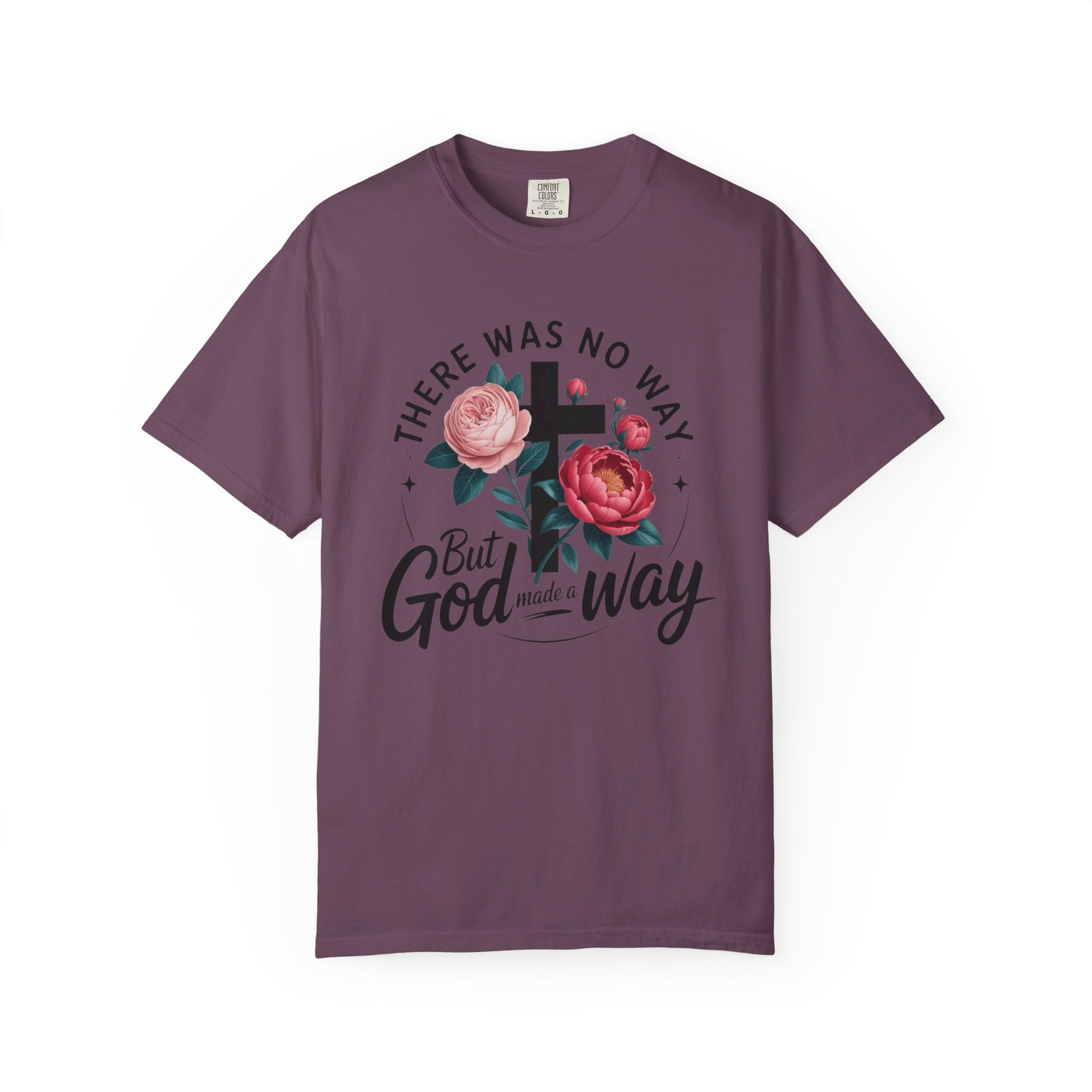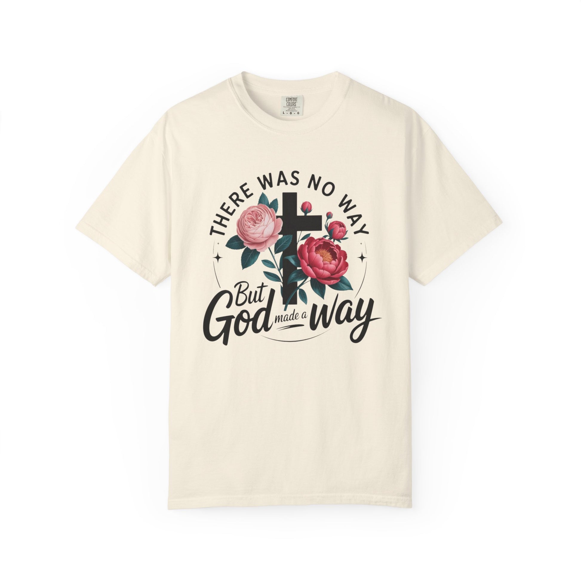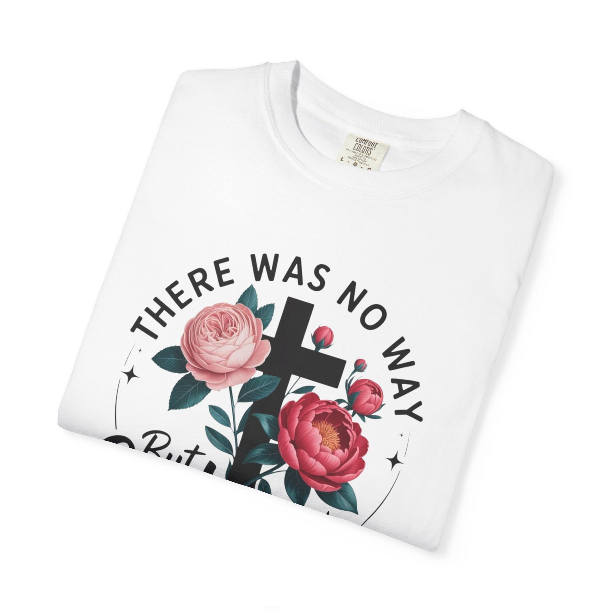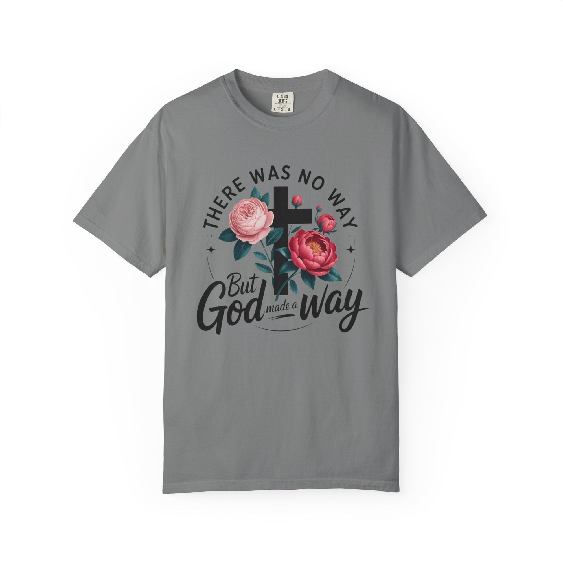Christian T-Shirt — "There Was No Way But God Made A Way" Floral Cross