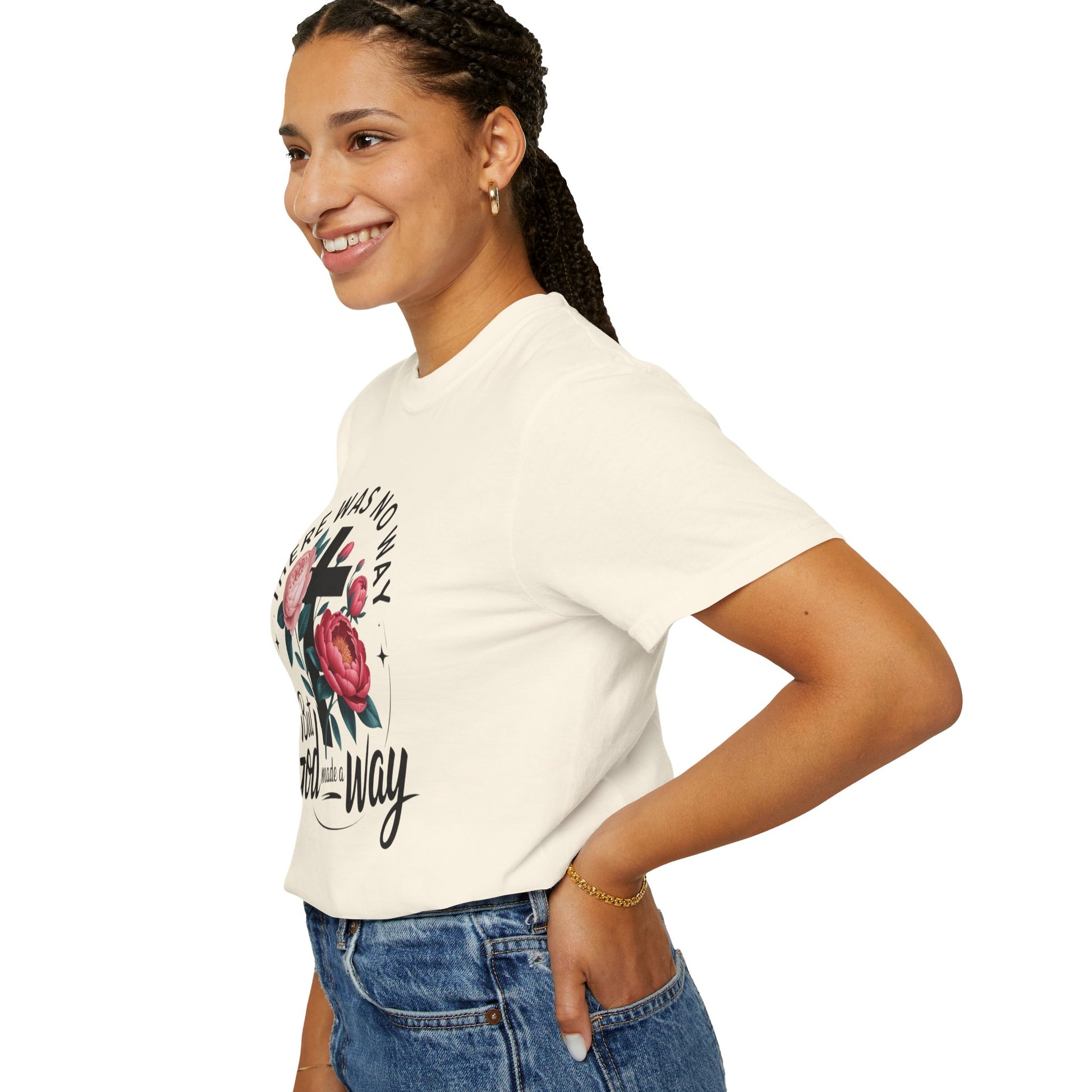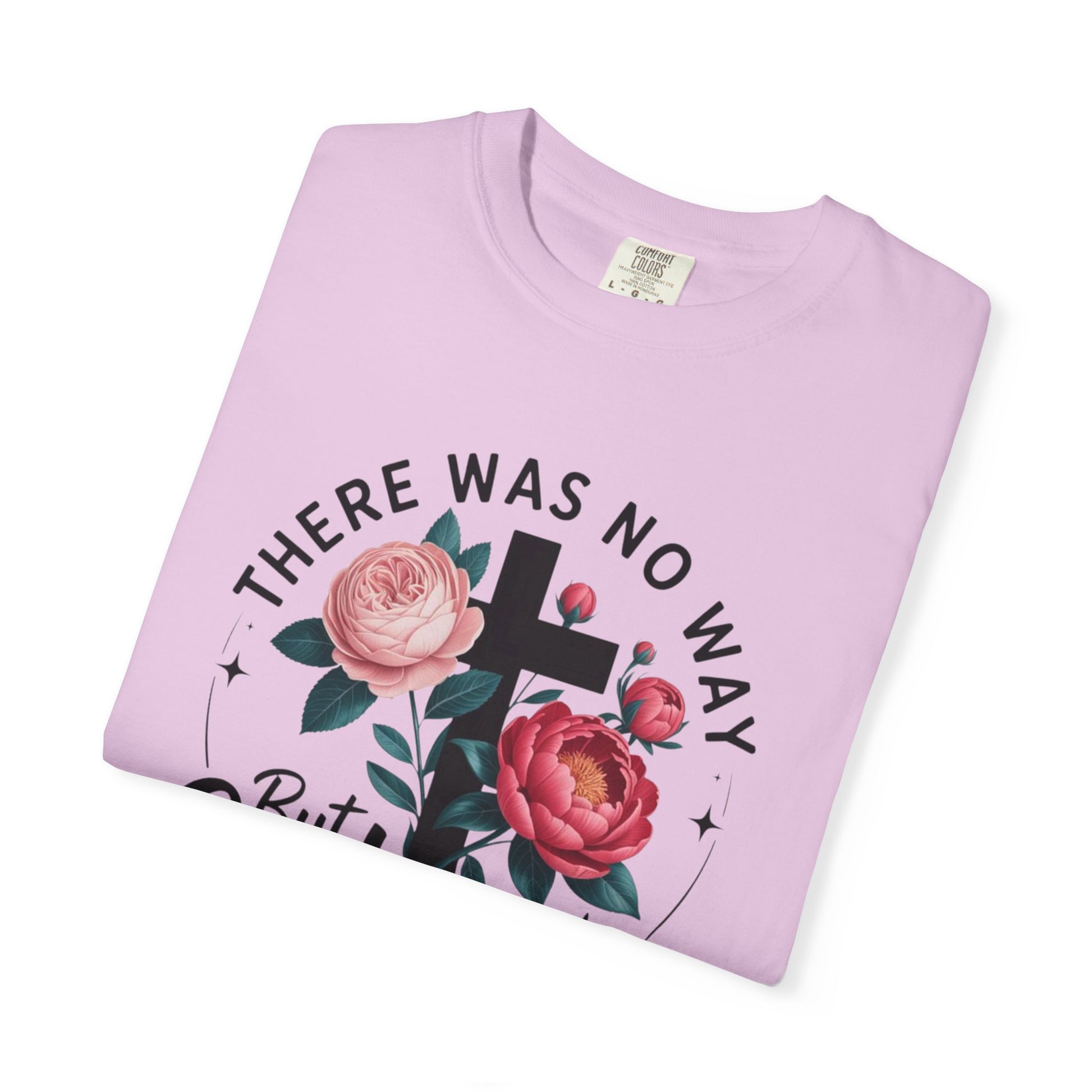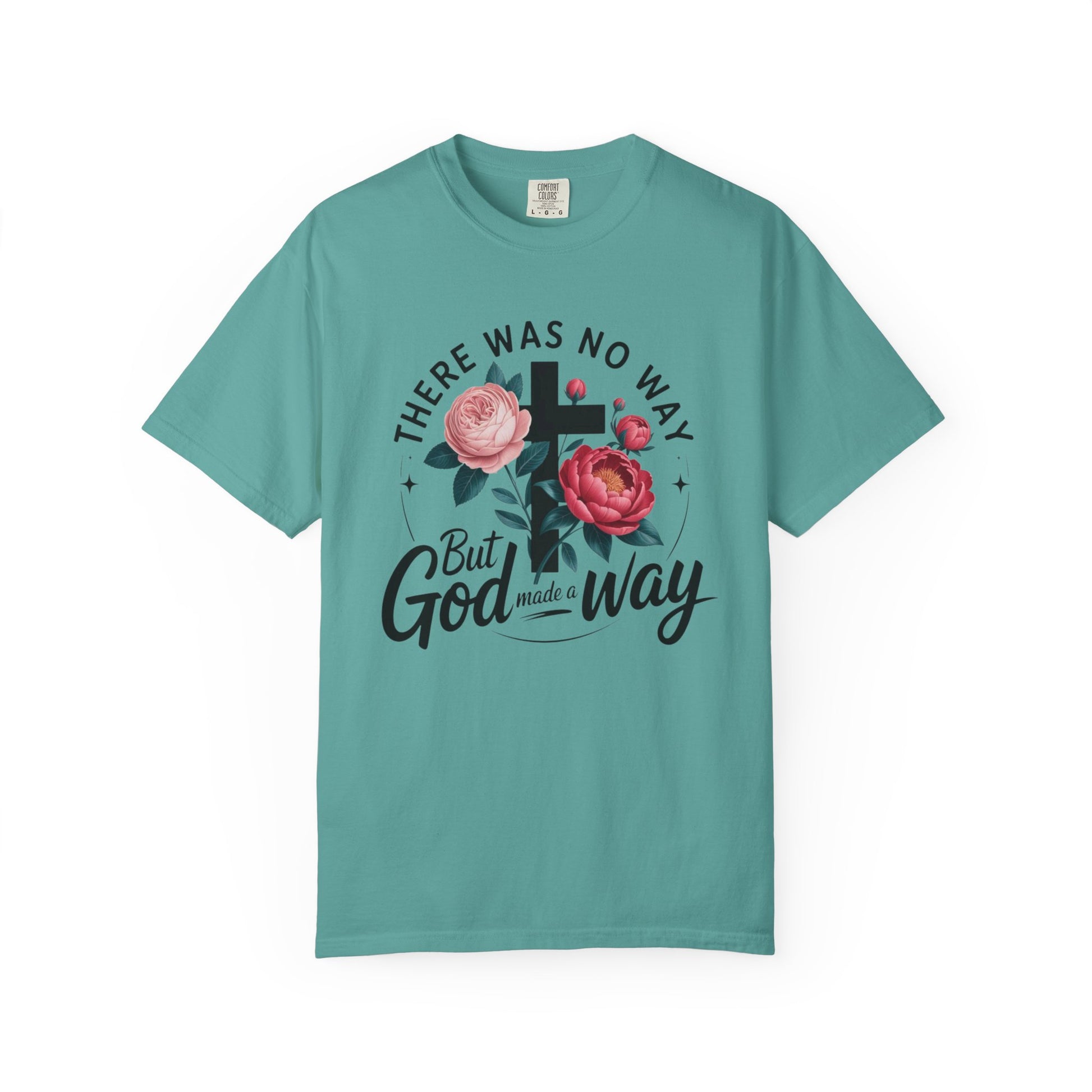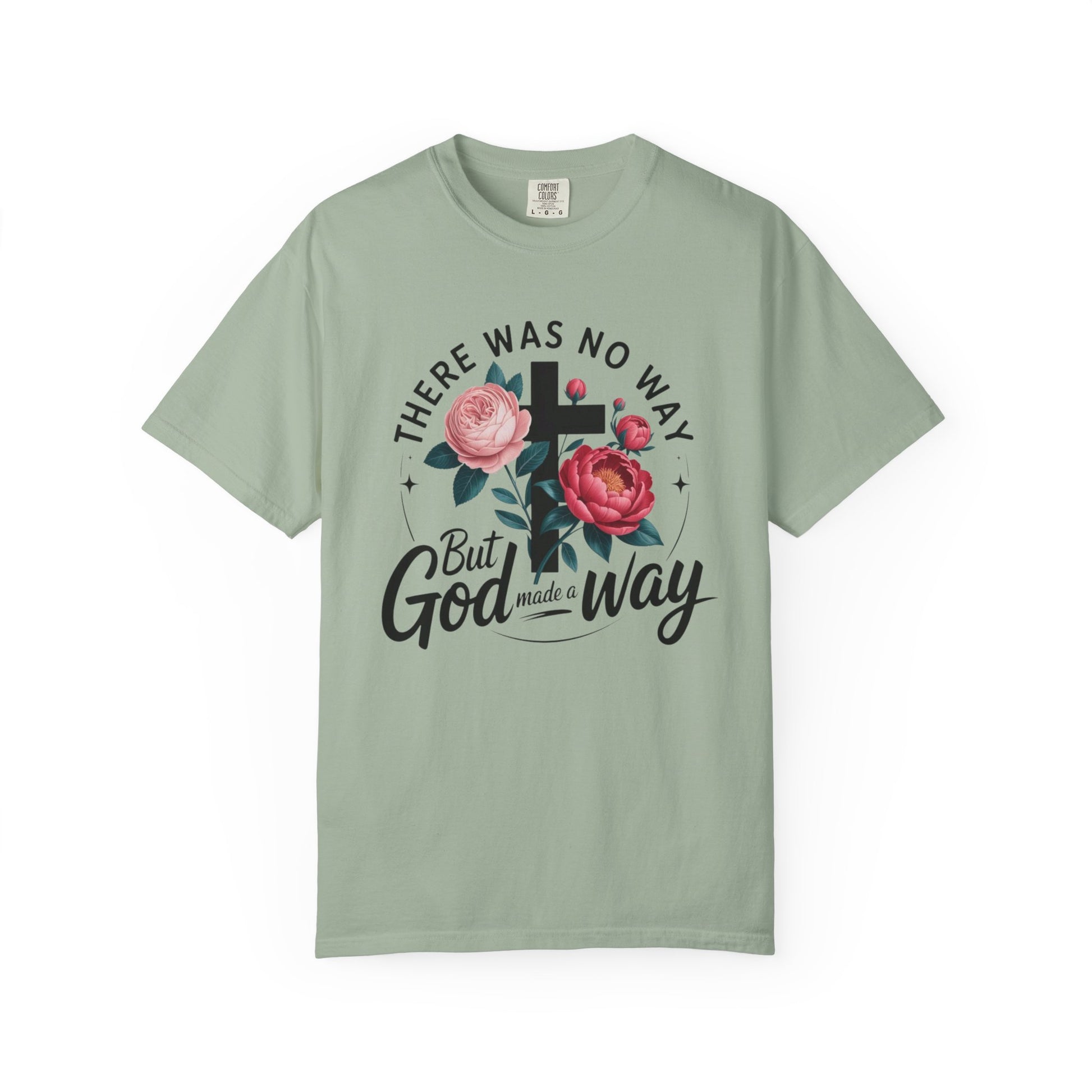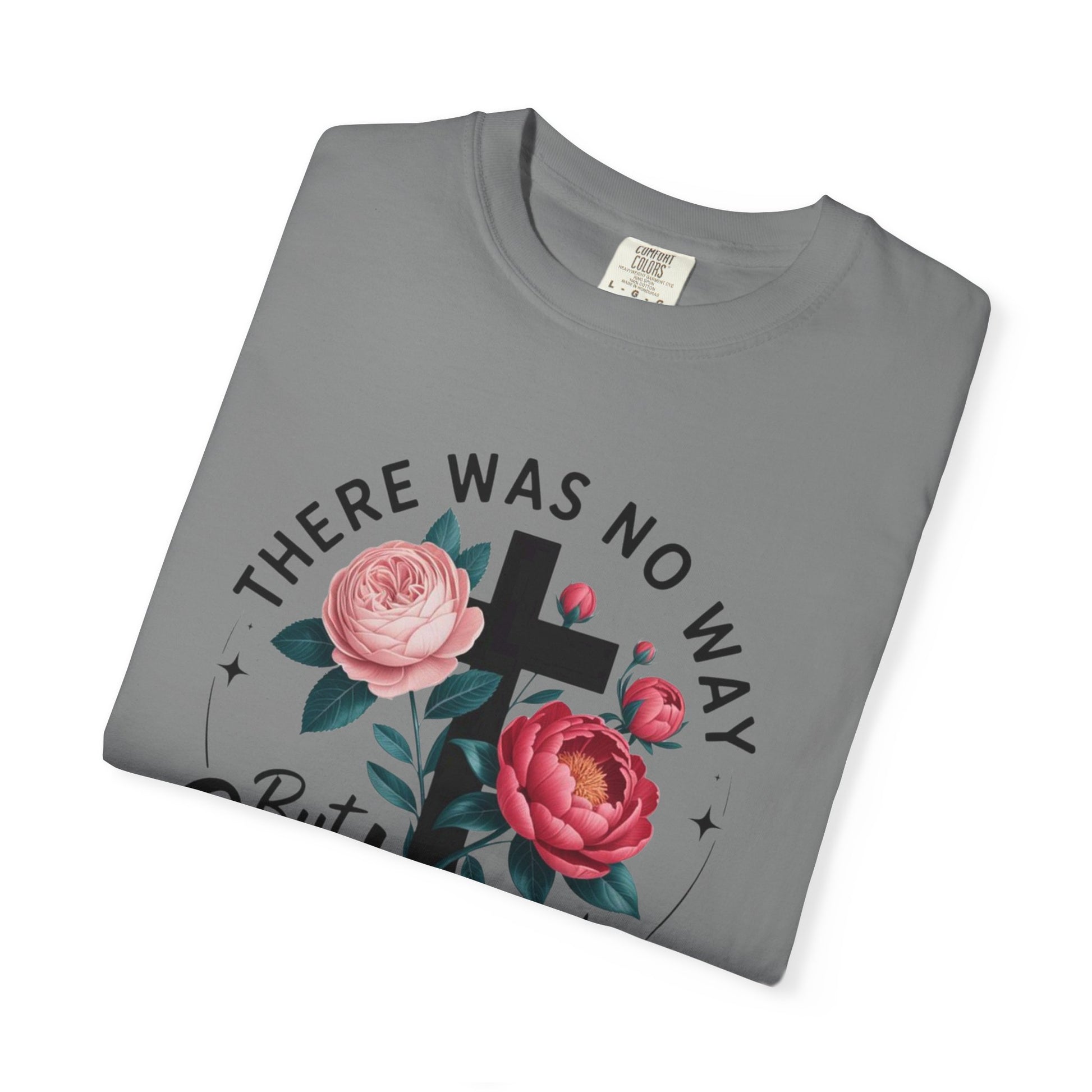 Christian T-Shirt — "There Was No Way But God Made A Way" Floral Cross