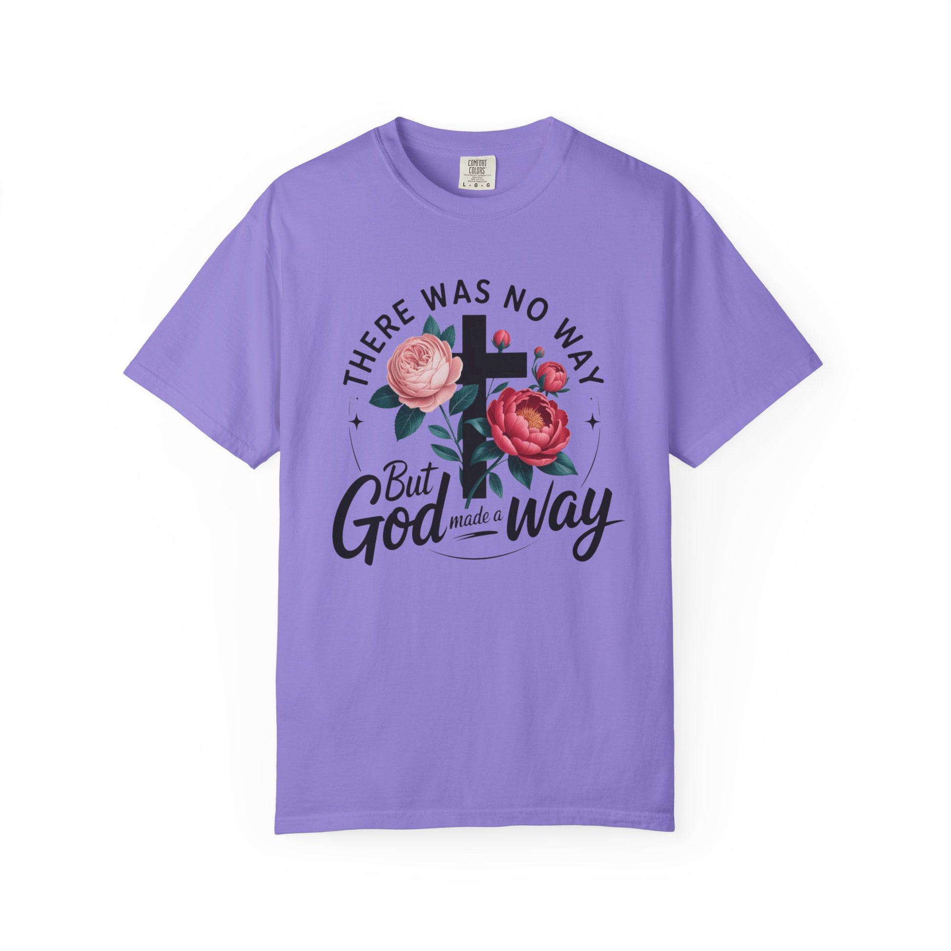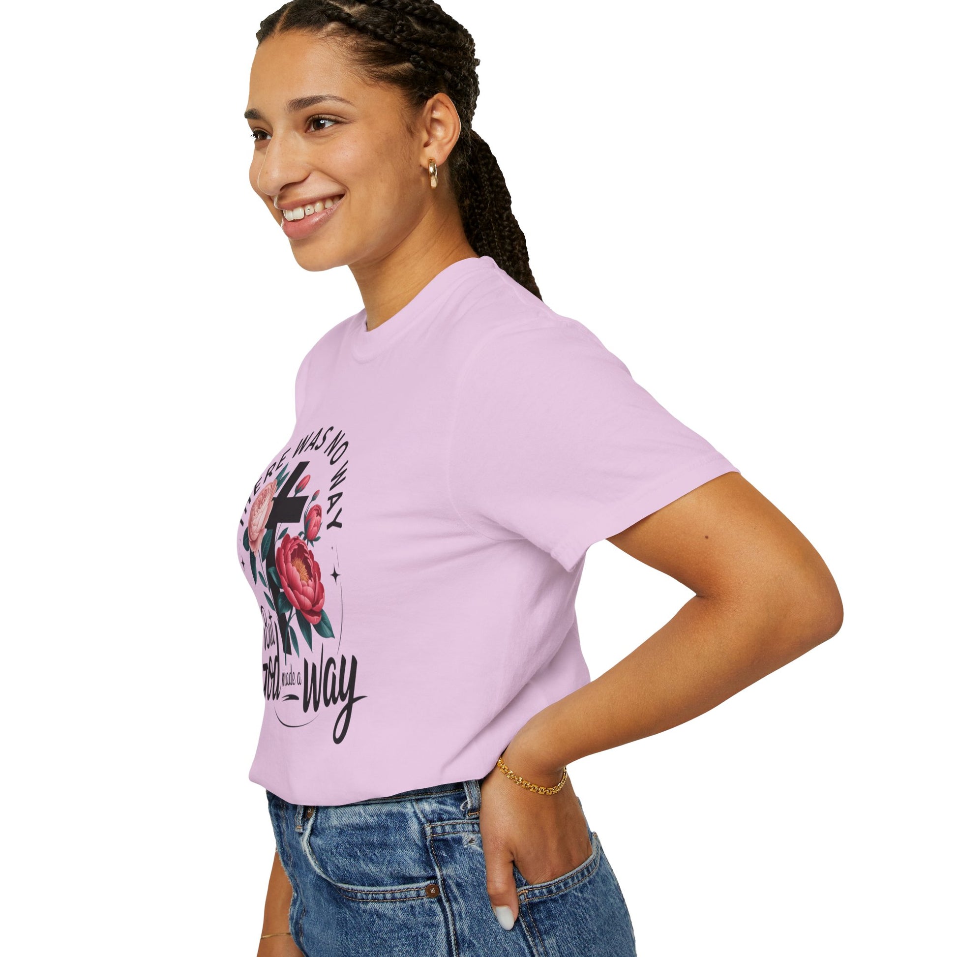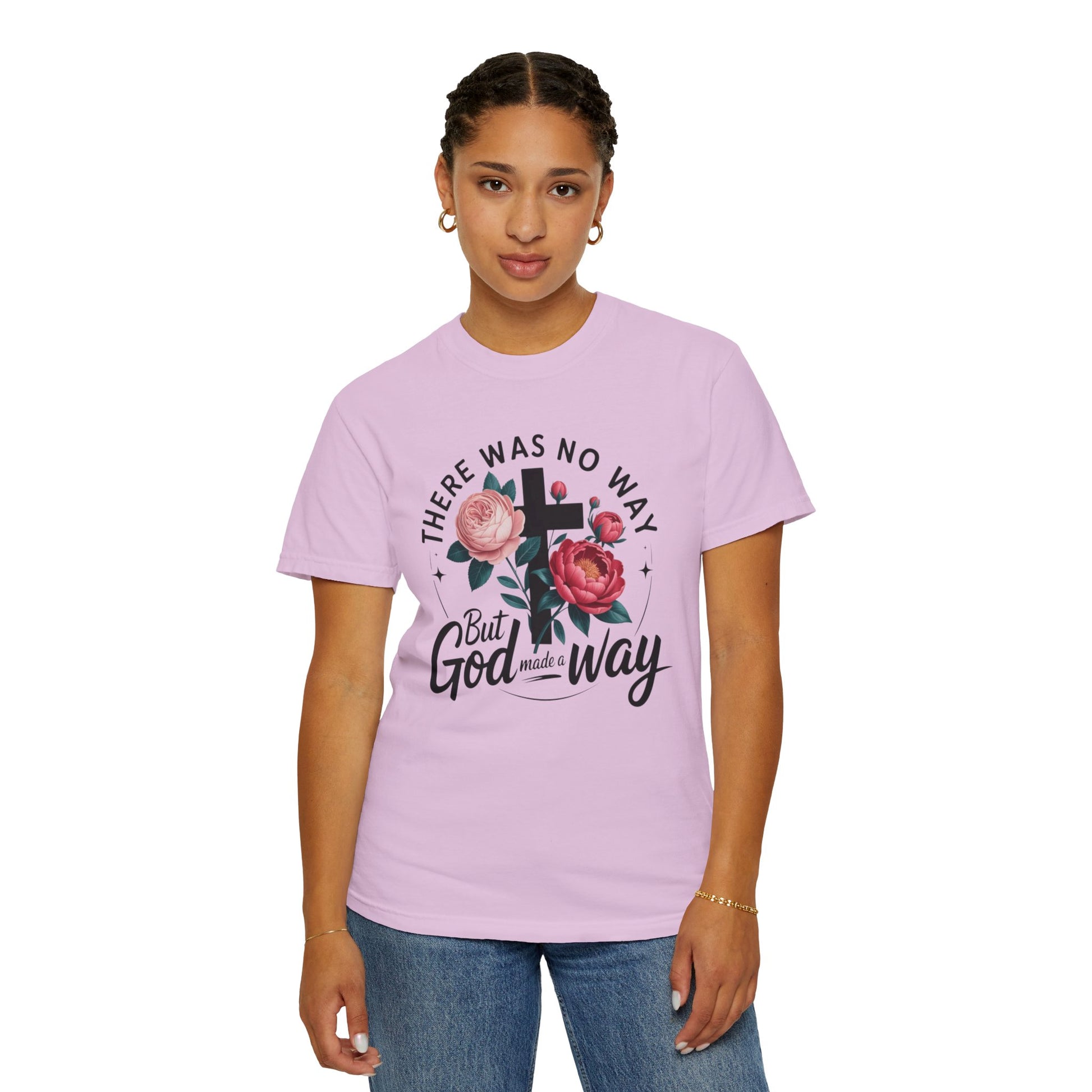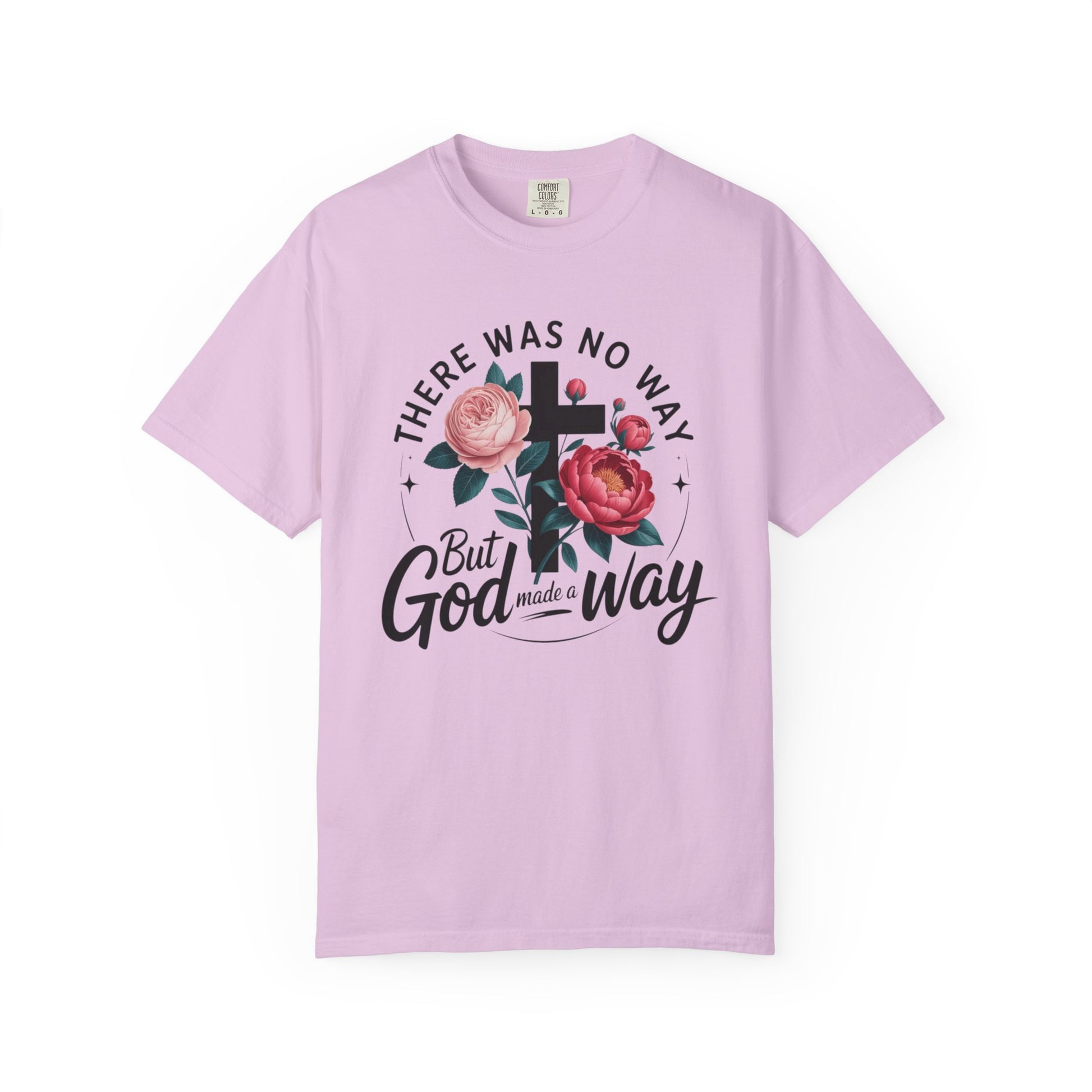 Christian T-Shirt — "There Was No Way But God Made A Way" Floral Cross