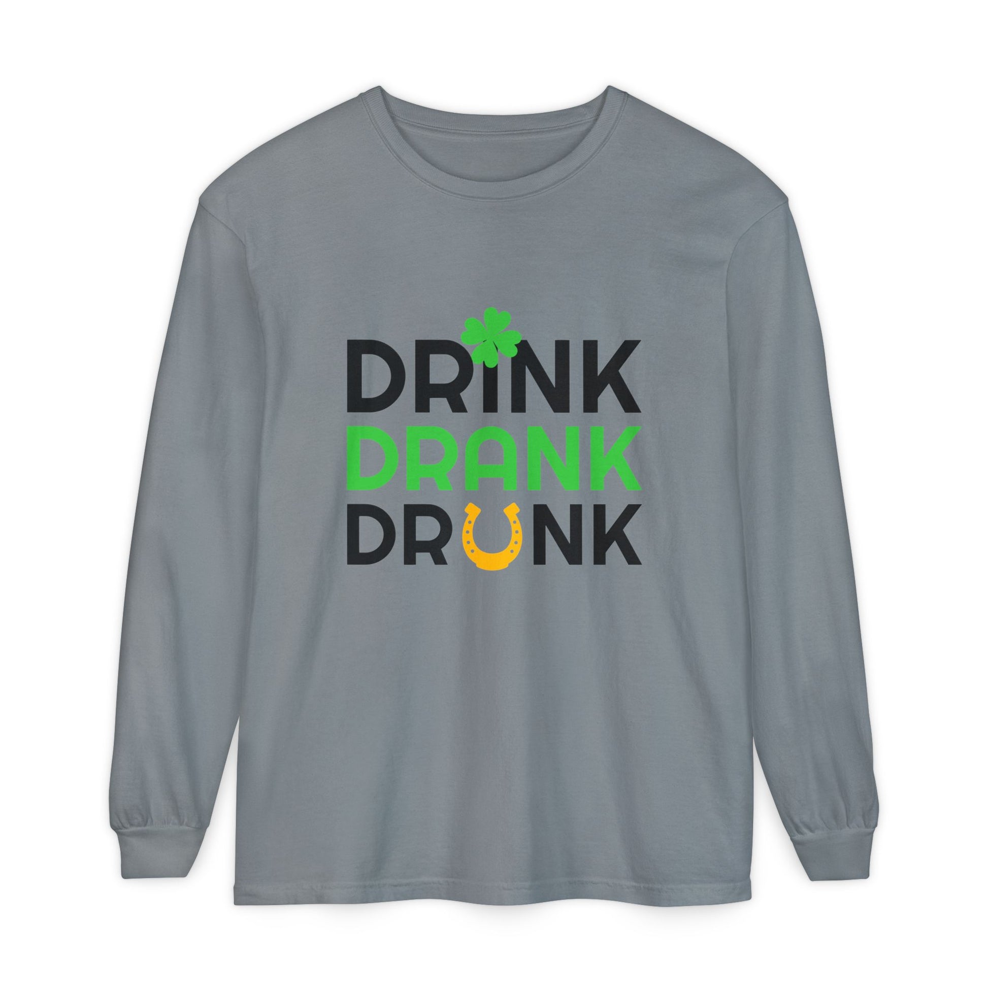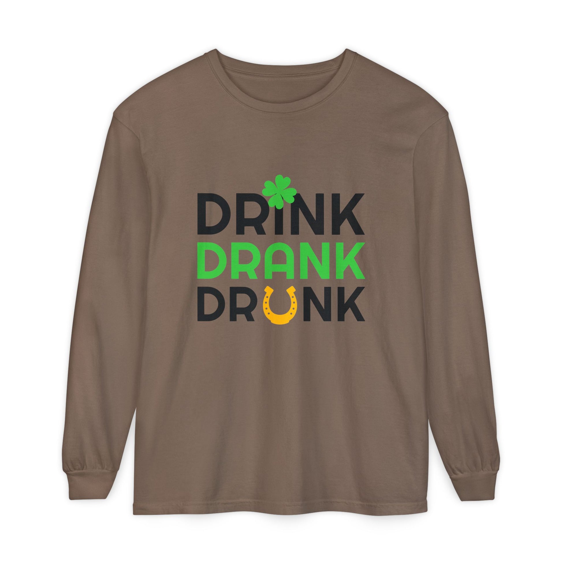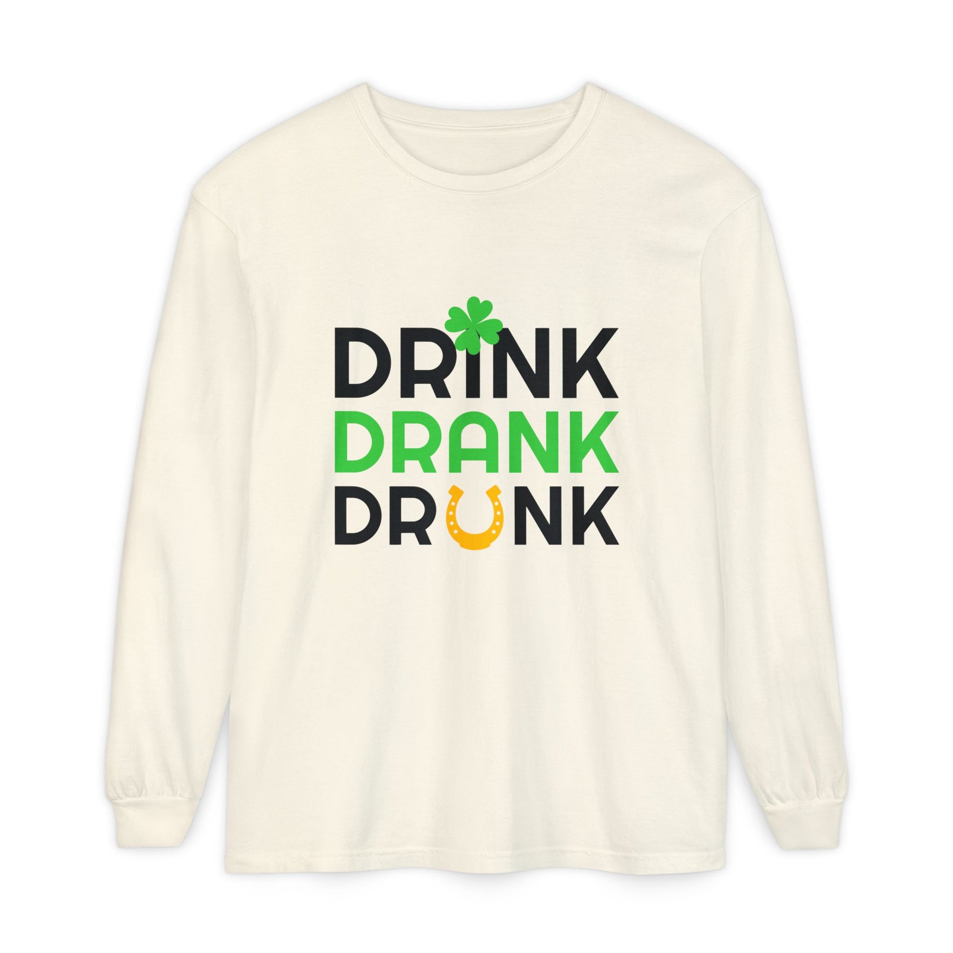 Drink Drank Drunk Shamrock Horseshoe Long Sleeve Tee | St. Patrick's Day Shirt
