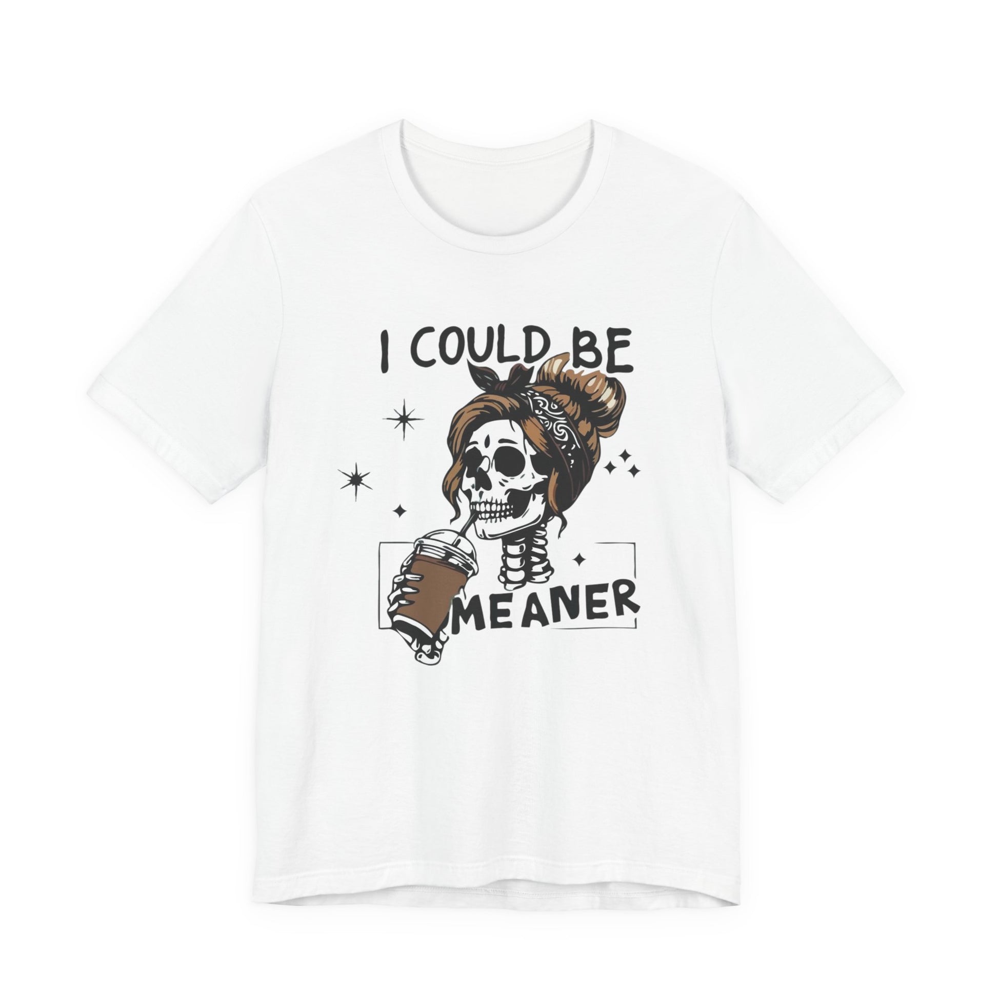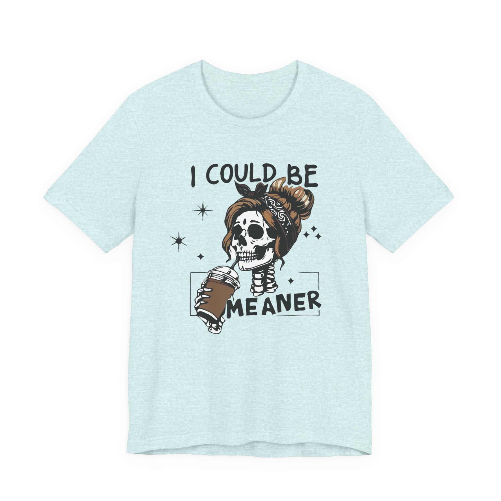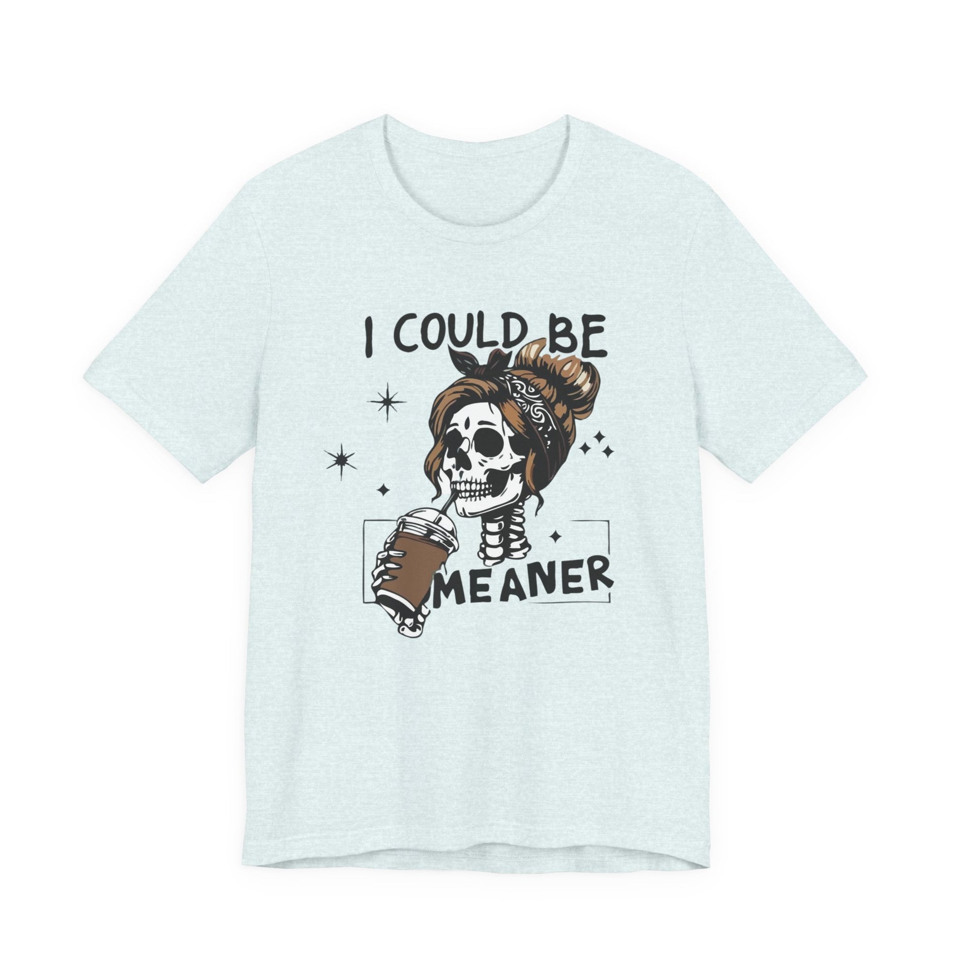 I Could Be Meaner skeleton with coffee T-Shirt | Skull woman graphic tee