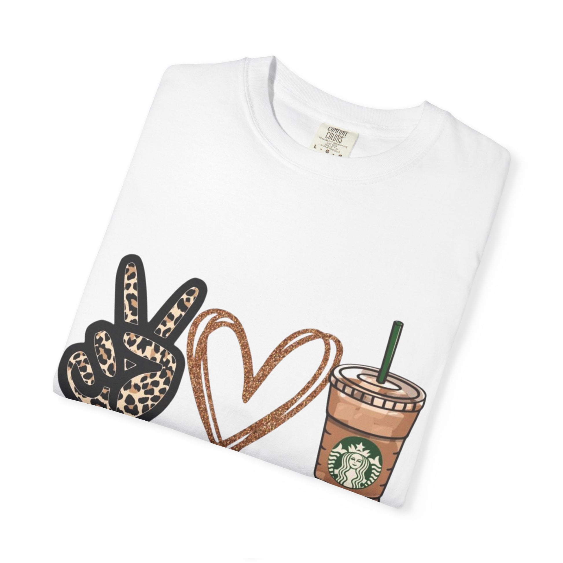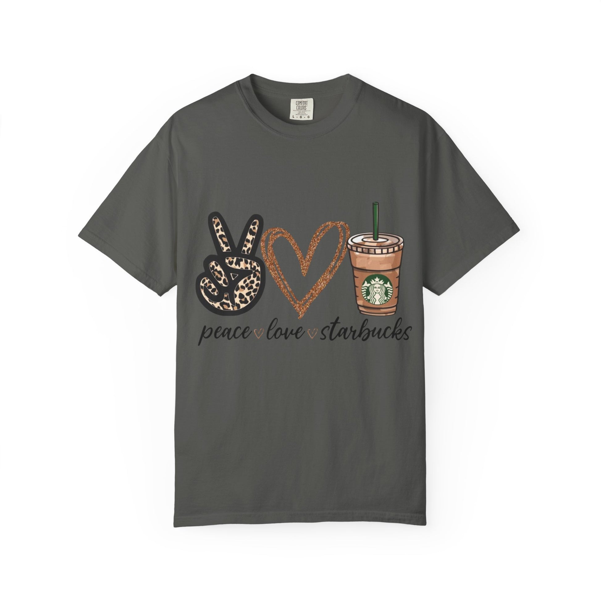 Peace Love Starbucks T-Shirt | Leopard Peace Sign Heart Coffee Cup